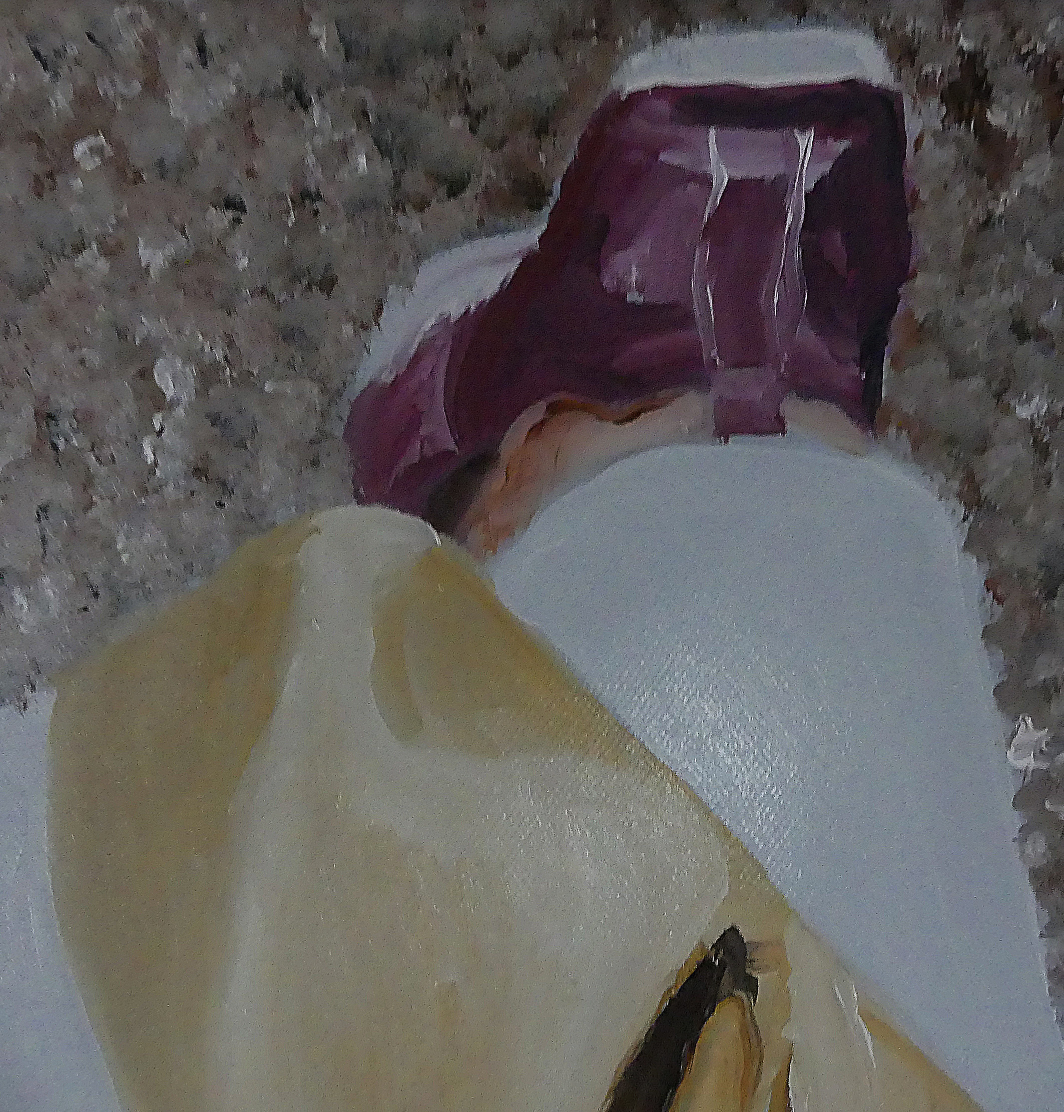 Une randonnée en montagne m’a donné deux tableaux. Celui-ci et « Parmi les pierres », un nu de plus grand format. Le challenge, c’était la roche et le plaisir manifeste de la randonneuse.